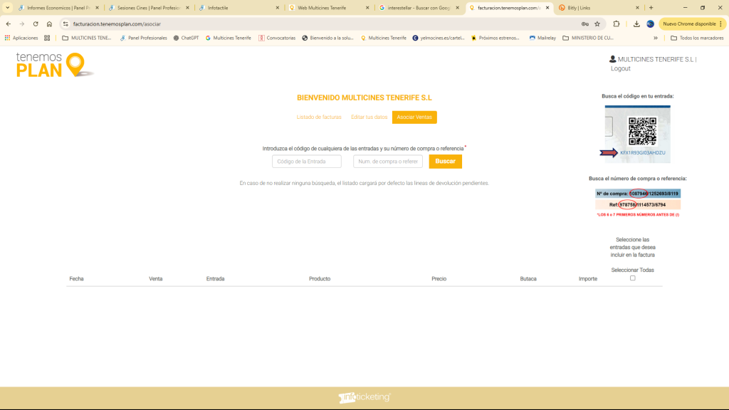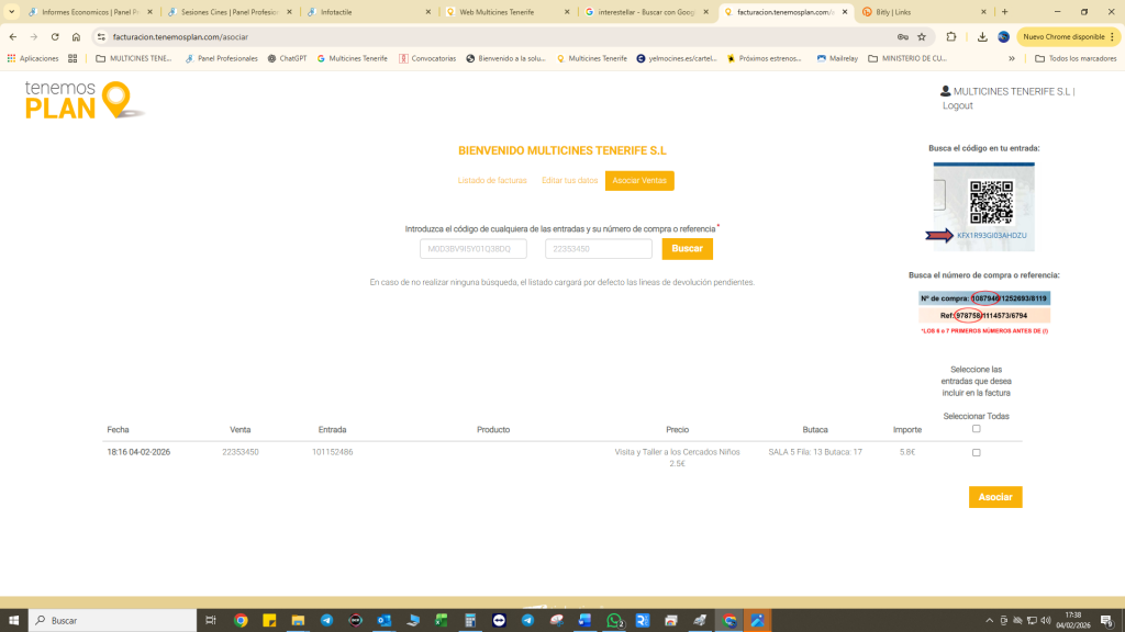 Se introduce el código alfanumérrico de la entrada y el primera cifra de los códigos de venta,