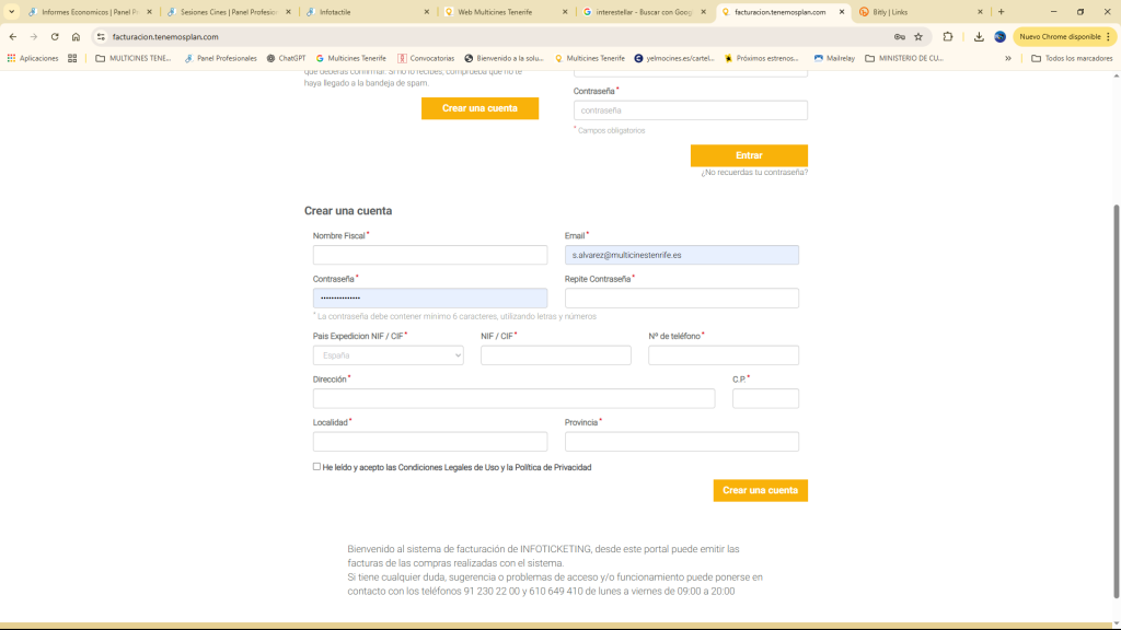 Darse de alta si no se ha creado la cuenta previamentee.