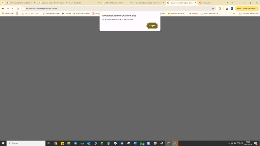 Luego se va a la opción «Listado de facturas» y aparece la ultima y anteriores que se hayan asociado, se marcan las que se quieren descargar y le damos a descargar.